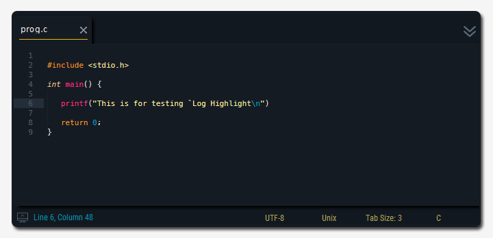 #include <stdio.h> int main() { printf("This is testing for Log Highlight\z") return 0; }